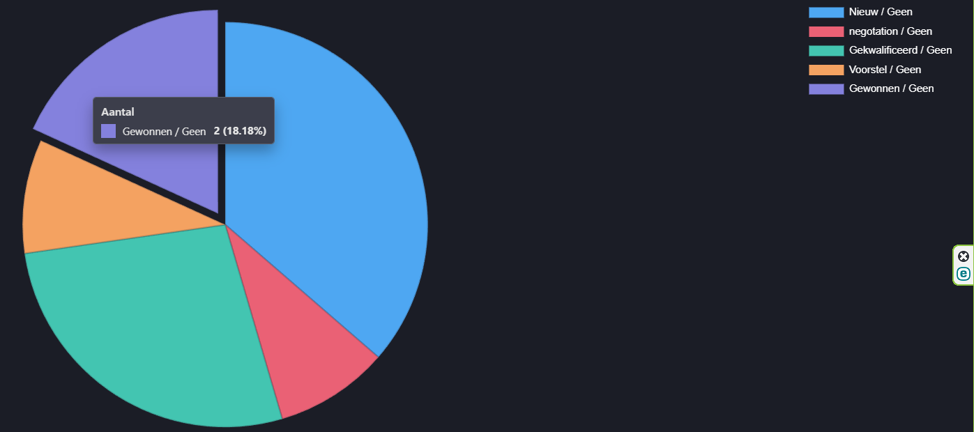 Zinvolle draaitabel & cirkeldiagram zijn gegenereerd op basis van de sales lead-data. Deze analyses bieden inzicht in de verkooppijplijn, de conversieratio’s tussen de fasen en de prestaties per salesmedewerker.