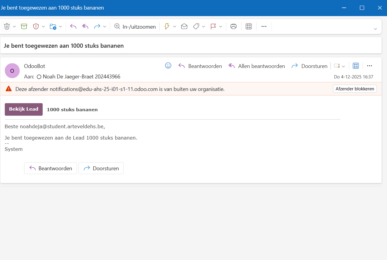 Na de e-mail gekregen te hebben, klikte ik verder en zie ik dat er automatisch een lead is toegevoegd dankzij het contactformulier in te vullen.
