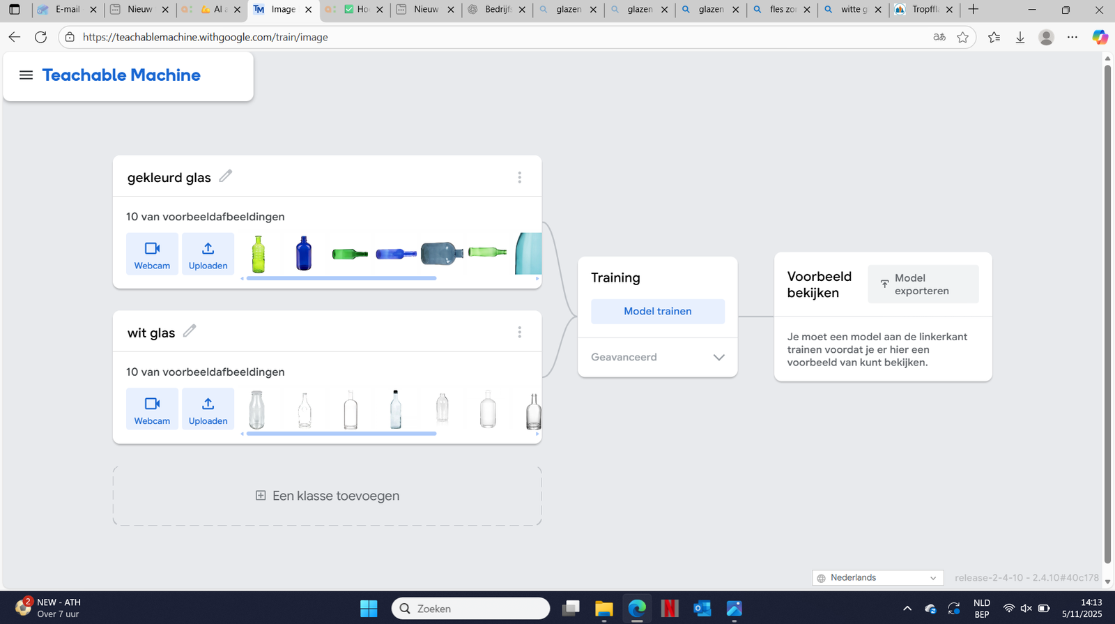 We automatiseren de visuele sorteercontrole in een drankencentrale bij de inname van lege flessen. Een camera met een getraind model beslist direct of een fles in de heldere glasstroom of in de gekleurde glasstroom thuishoort. Hierdoor daalt de contaminatie tussen stromen en verdwijnt een deel van de handmatige controle. Dat levert bedrijfseconomisch voordeel op via minder herwerk en lagere verwerkingskosten per ton glas, minder foutieve retouren en een hogere doorstroomsnelheid aan de sorteerlijn, waardoor dezelfde ploeg meer volume per uur verwerkt zonder extra personeel.