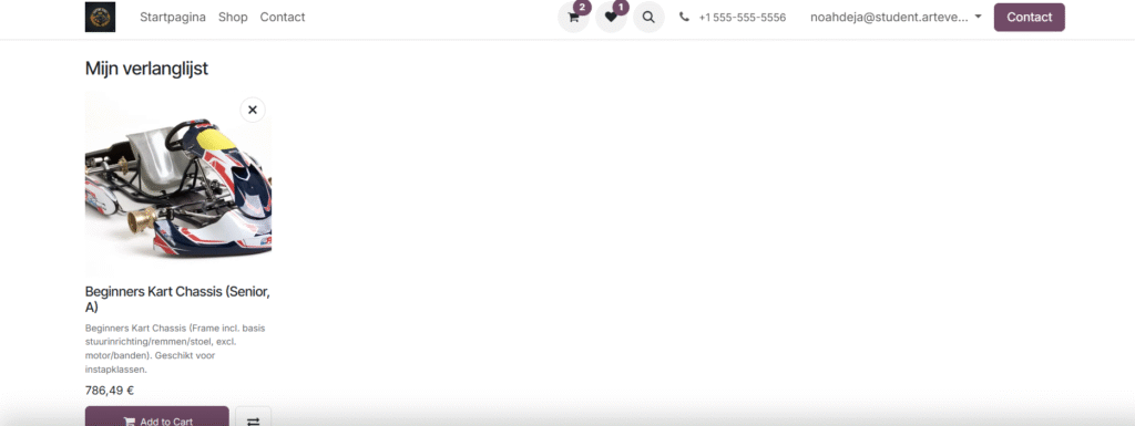 Ik gebruik het Beginners Kart Chassis als voorbeeldproduct.